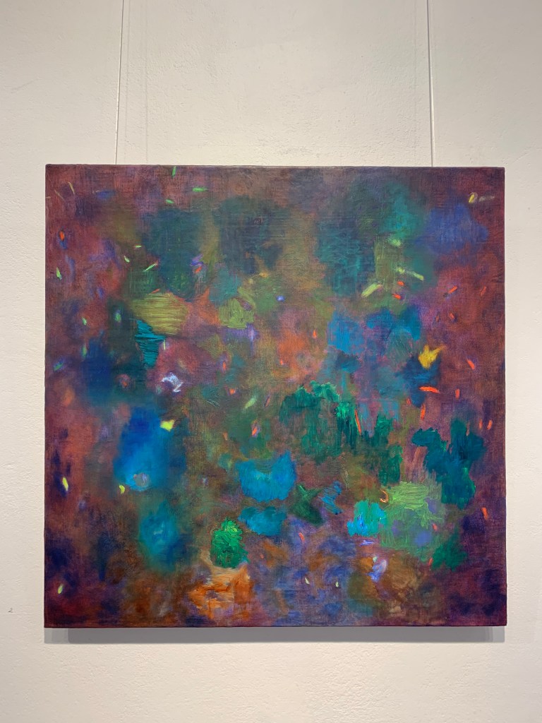 Pink Squall, Oil paint on Rabbit skin gesso on board, 700x700mm (Selected Finalist in the 2022 National Contemporary Art Award, Te whare o taonga Waikato – Waikato Museum).