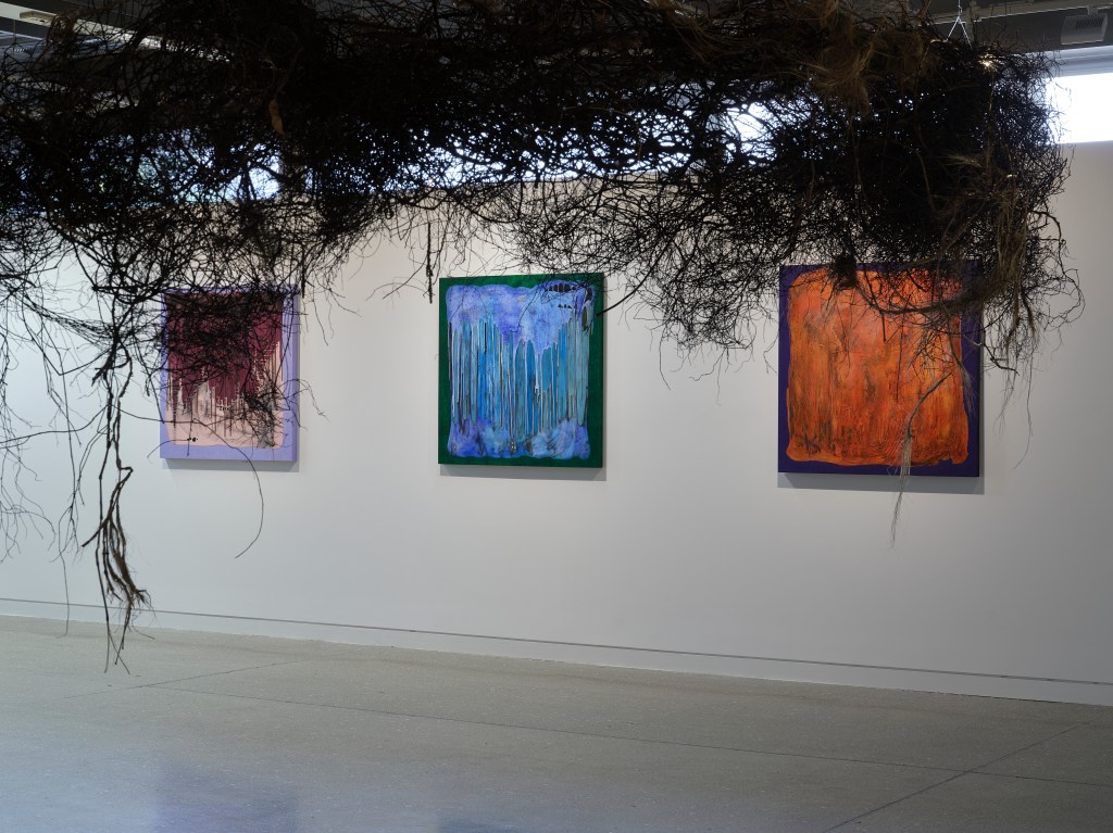 Colour moves through the space like a tide, steady and unforced. In Jana Wood’s paintings, vivid gestures meet the rhythm of the coast. Joy emerges, not as a denial of sorrow, but held gently within it. Her brushstrokes carry the motion of estuarine waters, shifting and restless, refusing to be fixed. They do not explain. They evoke. Like salt left on the skin after swimming, they remain as a trace of intimacy, a quiet reminder of what was once submerged.
