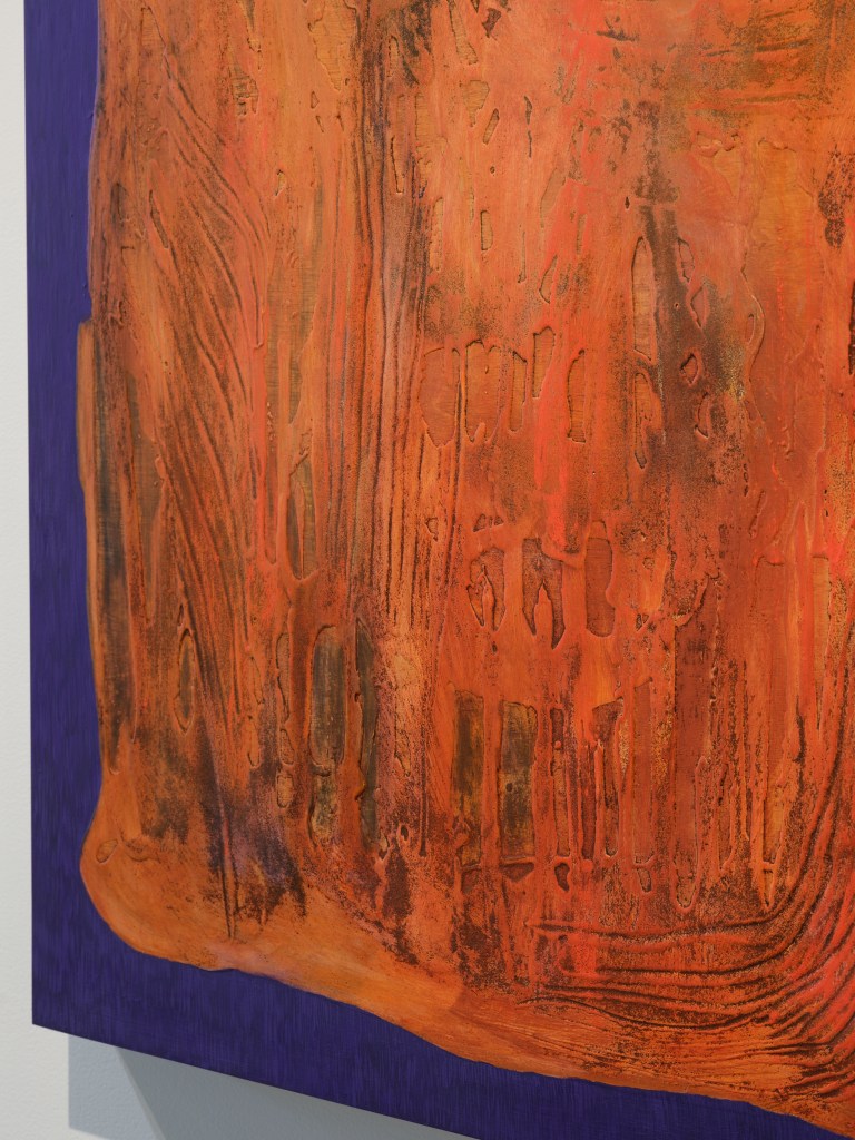 A resident of Port Waikato, painter Jana Wood left Tamaki Makaurau to reside in a place where the atmosphere can be felt more intensely; negative ions course over the dunes, transporting the rhythms of sand, water and air inland. For her series of paintings developed out of the wãnanga, Wood shifted her gaze from the qualities of the Port’s light and air – elements foregrounded in her recent practice – towards what lay beneath: “looking down rather than out … the energy is more a slumping, a gravity, and there is a downward flow and heaviness to the works”. The paintings are an ode to the drama and monumentality of the shifting dune systems, concentrated images which capture a feeling of being subsumed within something greater, something uncontrollable. By working through highly laboured techniques – layers of gesso and egg tempera made from scratch, mixed with natural pigment – Wood approached the paintings as events, parts of a life cycle, relinquishing the desire to capture or make still natural phenomena”.