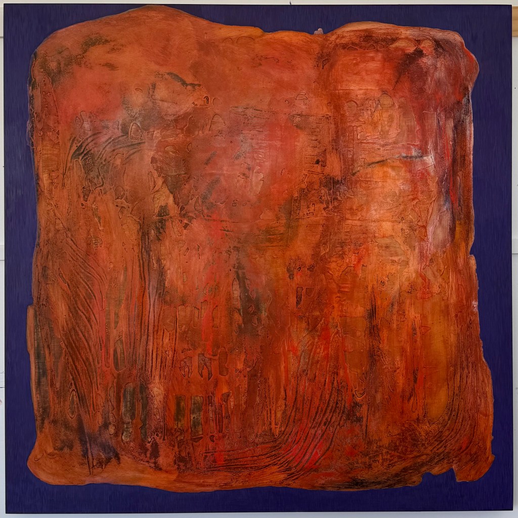 Blue Zone, 1000x1000mm, earth pigments, synthetic pigments, calcium carbonate, iron-sand on board